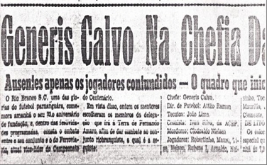 O Rio Branco S.C., uma das glórias do futebol parnanguara, comemora amanhã o seu 40º aniversário de fundação e, dentro das festividades programadas, consta o embate entre o seu conjunto e o do Ferroviário, atual vice-líder do Campeonato do Centenário.