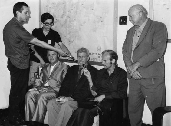 Ainda de 1972, participando de mais uma entrevista coletiva na Secretaria da Educação. O entrevistado era o historiador ponta-grossense Ribas Silveira. Ao lado dele o ex-presidente do Joquei Clube, Edmundo Grochoski. Na reportagem aparecem aqui João Hein Filho (Rádio Sant'Ana) e José Élvio Berg. Em pé à direita o professor Valdevino Lopes.