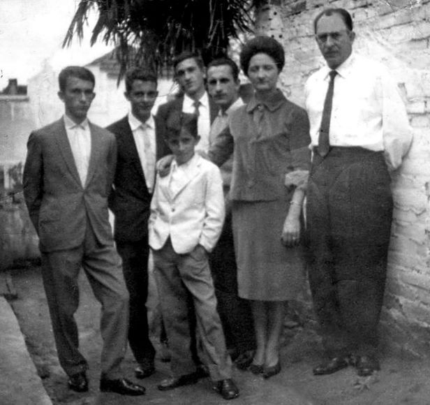 Revirando os arquivos e resgatando uma foto da minha família, completinha. Eu, meus pais e meus quatro irmãos. Sou o caçula. Na foto: Esvami (+), Edemir, Wilson(+), Jacir, Helena (+) e Vergílio (+) e o menino Osni Gomes